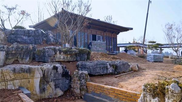 宁波园是目前主会场展园建设中完成度最高的一个展园。在展园建设现场可以看到,礁石假山、望海亭、文化长廊、海上书城、曲水流畅等重要景观节点已经基本完成,从主入口向里望去,景观节点错落有致,根据高差及主次关系递进分布,形成层层递进的视角关系。