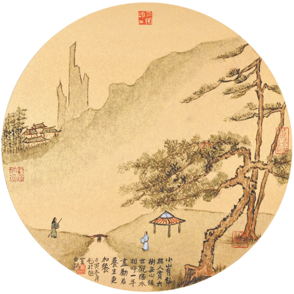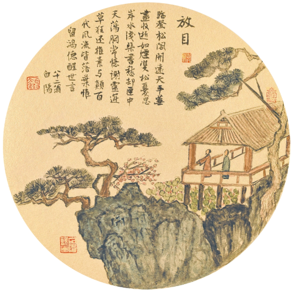 更为难得的是,旭宇还在不断向高峰挺进,他的艺术形态正随着技法的不断完善而别具洞天,其艺术形式正随着诗词意境的不断融合而进入天人合一的化境状态。从旭宇最近的作品之中,可以发现,一山一水、一草一木,皆若形若意;一笔一画、一情一景,随心所欲而不逾矩,挥洒自如而入神明之境。春夏秋冬、四时朝暮、心象变化,即在笔底升华,境界高旷,笔简神完,画里孕育着诗意,画外洋溢着诗情。文人高士、山石松柏、斜阳飞燕构成具象与意象的融合,虽在咫尺之内,却有千里之遥;虽在方寸之间,却达苍茫之势,给人一种超脱尘俗的审美境界。