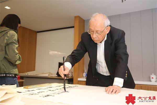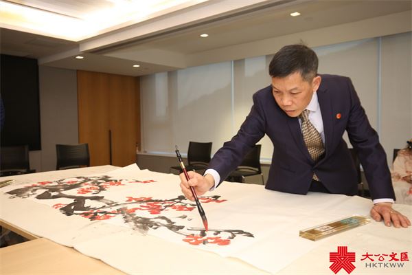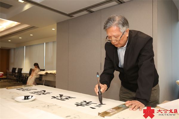 當天正值農曆小寒,但筆會現場暖意濃濃,墨香四溢。行書、草書、隸書、水墨花鳥、鬥方、春聯,書畫家們以筆墨寄心意,以字畫抒真情,將對祖國和大灣區的真摯祝福傾注於筆端,即興創作了多幅書畫作品。一幅幅遒勁有力、清新飄逸的書法作品,一幅幅形象生動、意境深遠的水墨畫在台案上展開,充分展現中國傳統藝術之美。