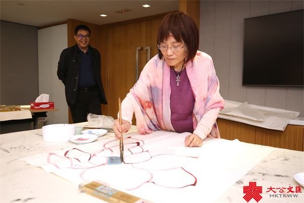 中國書畫世界行澳門交流會主席潘錦玲揮毫創作。