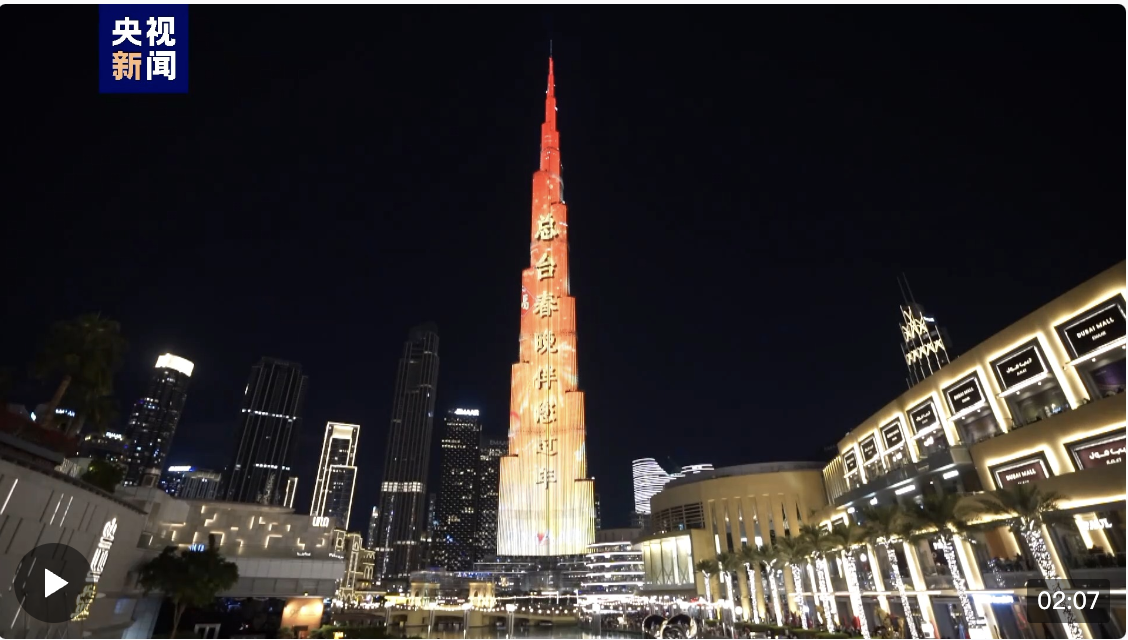 自2020年起,总台连续五年携手迪拜伊玛尔集团,在哈利法塔点亮新春灯光秀,让身处海外的华侨华人感受到浓浓的故乡情、家国情。如今,在哈利法塔观赏总台新春灯光秀已经成为当地华侨华人过年必备的仪式感。为了让更多当地民众和各国游客近距离欣赏这场精彩绝伦的视听盛宴,哈利法塔还将在2月8日和9日,农历二十九和大年三十,再度上演总台新春灯光秀。