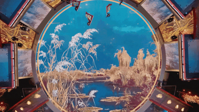 晚会在突出呈现戏曲艺术经典之美的基础上,将古典诗词、国风乐舞、武术绝技、历史人物、地域文化、民俗风情等融合创新,更多贴近年轻人的审美。地域特色秀演《巴适得板》以四川特色方言说唱的创意,结合川剧、四川金钱板、四川扬琴、四川清音及广东粤剧等传统非遗戏曲曲艺,在沉浸式剧场中多场景联动描绘巴蜀风情、展现活力满满、热气腾腾的现实生活。沉浸式戏剧《天下客栈》以年轻观众喜爱的影视化形式,展现“天下第一团”小剧种的独特魅力。影视戏中戏《武林风云会》将戏曲中的武戏在台上台下交互呈现,“高手过招”尽显扎实的功底。创意戏歌《国风超有戏》通过京剧、川北大木偶戏等传统戏曲元素与流行音乐融合创编,发出国风国潮的时尚新声。