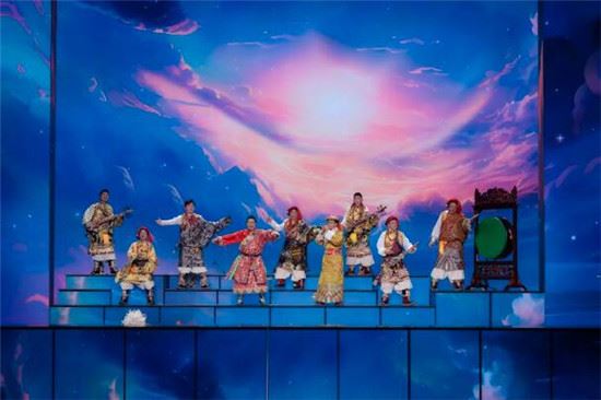 《永恒的诗篇》三组表演者分别来自克孜勒苏柯尔克孜自治州歌舞团、安达组合和西藏昌都市康巴文化艺术团,舞台上还有三位汉族乐手与他们全程共演。在一次又一次排练中,导演组与表演者们不断琢磨歌曲表演和舞台呈现,彼此的节奏也日益合拍。在除夕之夜的演出中,大家的歌声与演奏真正如歌词所写,像石榴籽一样紧紧地拥抱在了一起。
