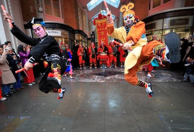 2月10日,龙年正月初一,来自广东普宁的英歌舞团在英国伦敦百年地标伯灵顿拱廊演出。英歌与“英歌land”(英格兰)相遇,广东传统民俗跳出国门,正式出海。