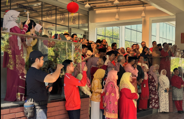 环球评报新闻网马来西亚讯|迎新年除旧岁,当地时间2月16日UKMSHAPE开放日这天,师生与近百位留学生共聚一堂,共庆新春,场面热闹欢腾。中国留学生们虽然与家乡相隔千里,但也能在马来西亚与各国同学共同欢庆新年,感受独属马来西亚华人的新年氛围。
