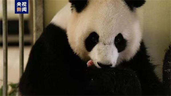 △“微笑使者”熊猫创意作品全球征集活动第一份作品——2017年刚出生的熊猫宝宝“圆梦”和熊猫妈妈的合影