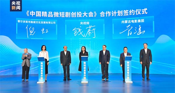 活动现场,《中国精品微短剧创投大会》合作计划发布,通过“1场融媒体节目+3场圆桌对谈+5场主题精品分享+N组系列短视频”,打造矩阵化、系列化的内容产品和集群活动。作家、茅盾文学奖获得者梁晓声与内蒙古电影集团有限责任公司董事长曾涵现场推介,总台央视频、内蒙古电影集团有限责任公司与鄂尔多斯市融媒体中心负责人现场签署了《中国精品微短剧创投大会》合作计划书,联合打造全国微短剧行业的视听盛会。