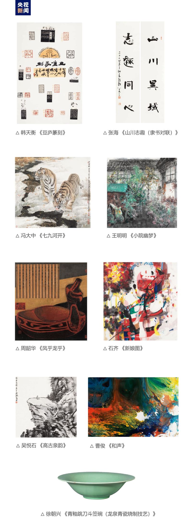同时,联合国教科文组织“和平艺术家”、清华大学文科资深教授韩美林,著名书画家、上海大学上海美术学院教授陈家泠,陕西省美术家协会名誉主席、陕西省中国画学会会长王西京,中国艺术研究院中国篆刻艺术院名誉院长、西泠印社名誉社长韩天衡,中国书法家协会名誉主席张海,中国工笔画学会名誉会长冯大中,中央文史研究馆馆员、北京美术家协会名誉主席王明明,中国国家画院院务委员、湖北省文联原主席周韶华,北京画院艺委会原副主任、中国国家画院研究员石齐,中国艺术研究院特约研究员吴悦石,纽约中国画学会会长曹俊,中国工艺美术大师、国家级非遗代表性传承人徐朝兴等多位艺术家的作品将在大展亮相。