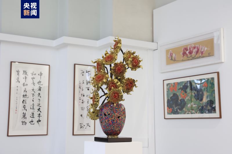 书画大家、鉴藏家、中国艺术研究院博士生导师、故宫学院中国画研究院院长崔如琢展出的三幅作品《雪江话意》《醉秋》《玉露洗残红》,融合传统与现代,展现出中国国画的意蕴风采。中国工艺美术大师、国家级非遗铜雕技艺代表性传承人朱炳仁的熔铜雕塑作品《燃烧的向日葵》《情深东西》,以传统工艺展现东西方艺术的交融互鉴。国际奥委会奥运艺术大使、著名雕塑家黄剑携雕塑作品《同舟共渡》《从北京到巴黎》参展,以巴黎奥运会为契机,在艺术交流中加深对彼此的理解和友谊。