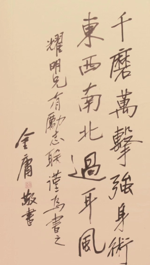 陈建华创作的梁羽生、金庸人像雕塑匠心独具,他谈及自己的创作思路时说:“设计金庸先生雕塑形象的时候,我将倚天剑和屠龙刀的元素融入其围巾的造型中,使其看起来更为豪迈不羁;而梁羽生先生的形象以儒雅为特质,展现其隐者风范。不变的是,两者眉目之间皆透露家国情怀以及对人生百态的洞察之情。”