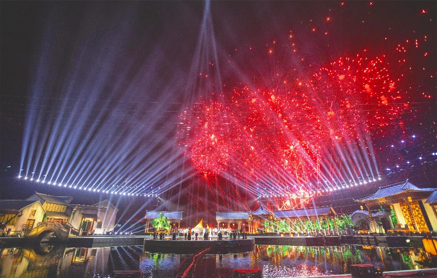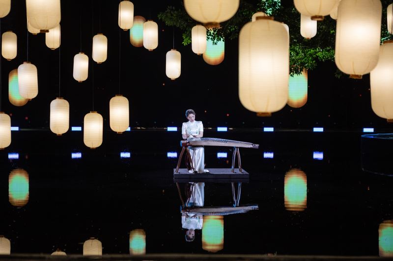 在新技术手段的支持下,借由融合外景拍摄、虚拟制片与实景山水于一体的场景营造,舞台时而穿行江南水乡、时而穿越历史甬道,营造出浓浓的团圆气息。