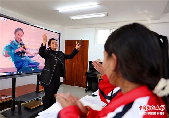 云南大学昌新国际艺术学院音乐系主任夏夏老师为沧源佤族职业技术学校学生上声乐课