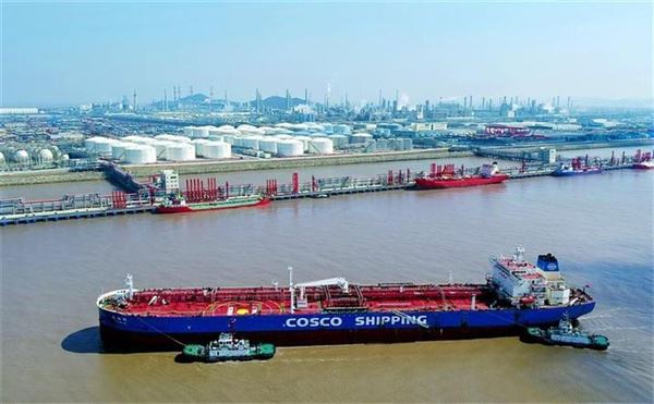 近日,在岱山县秀山东锚地,舟山远投油品贸易有限责任公司的供油驳船“新科16”,为锚泊在此的利比里亚籍国际航行船舶“VEGA SONG”轮加注了1485吨保税低硫燃料油。据统计,2022年,舟山保税船用燃料油直供量602万吨,同比增长9.11%,舟山港成功跻身全球第五大加油港。