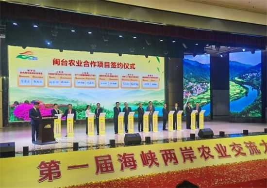 开幕式上,还进行了农业领域对台合作专案签约仪式。签约项目共计25个,总投资额58亿元,主要涉及台湾名优农产品种植、农产品加工、三产融合等领域,其中12个专案上台签约。