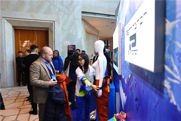 他的另一个身份是上海安迪维特旅游用品有限公司中国区营销总监。他带着公司代表性产品——滑雪服,来到世界寒地冰雪经济大会冰雪装备展现场,受到关注。