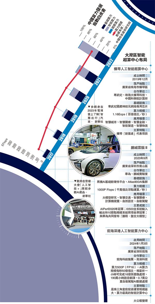 (大公報 記者 毛麗娟 深圳報道)1月2日,前海管理局以2024年「一號文件」形式印發出台《深圳市前海深港現代服務業合作區管理局關於支持人工智能高質量發展高水平應用的若干措施》(下稱《措施》),聚焦落實《前海方案》和《前海總規》部署,推進現代服務業創新發展,建設深港人工智能產業集聚區,加快前海人工智能企業集聚,並引進境內外人工智能創新資源,促進人工智能創新鏈、產業鏈、資金鏈、人才鏈深度融合發展。《措施》支持智能算力中心和算力調度平台建設,單個平台最高可支持2000萬元(人民幣,下同)。3日,前海深港人工智能算力中心正式點亮啟動,提供算力調度、算力交易、算力應用和算力安全等一站式算力服務。