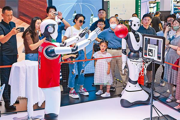 在上海舉行的世界人工智能大會,投籃機器人神乎其技,觀眾嘖嘖稱奇。(新華社)