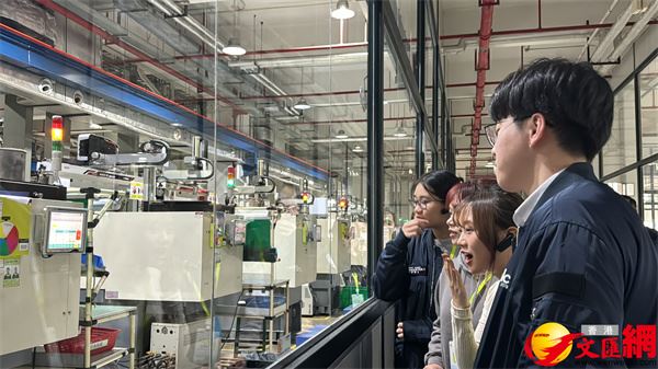(香港文匯網記者 黃寶儀)光潔明凈的車間內,幾乎看不到工人的身影,一排排的機械臂正在安靜地工作;而漆黑的健康品數字化智能化車間裏,只有作業機器在間歇地閃着光,AGV(自動導引車)在註塑機之間來回穿梭;在車間一側的實時看板,集合了自動排產、生產執行、設備與模具維護、品質管理、倉存管理等模塊的數字化管理系統,讓鴻利達實現了生產製造全流程的數字化。看到眼前顛覆想像的車間,「嘩!嘩!」的驚嘆此起彼伏,前來鴻利達精密組件(中山)有限公司的香港生產力促進局冬季實習生計劃的30多名學生都表示大開眼界,更直言看到灣區內地城市的「智造」現狀,即使以前沒計劃北上發展,現在都對到灣區內地九市發展「有小小心動」。