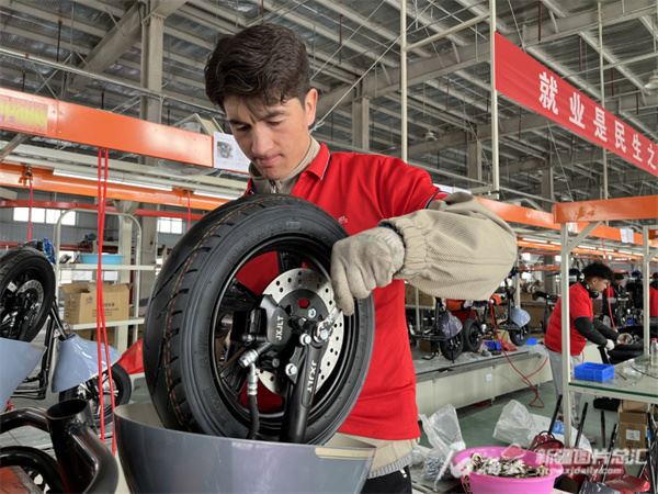 位于克孜勒苏柯尔克孜自治州江苏产业园的飞凤车业(克州)有限公司,员工在组装电动摩托车(拍摄于2023年11月)。石榴云/新疆日报记者 拍热扎提·阿不都 摄