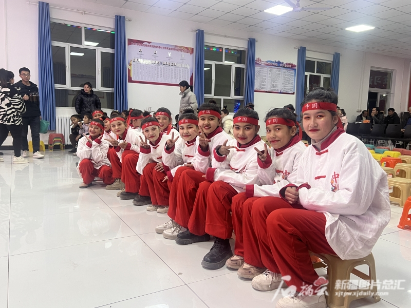 2023年11月29日,和田市拉斯奎镇博斯坦阿勒迪村的孩子们准备表演《少年中国说》。石榴云/新疆日报记者 拍热扎提·阿不都 摄