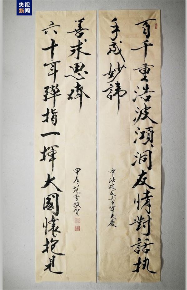 著名书画家、“法国荣誉军团骑士勋章”获得者范曾为本次活动题写对联:“百千重浩波澒洞,友情对话,执手成妙谛;六十年弹指一挥,大国怀抱,见善求思齐。”他认为,中国和法国,作为东西方文化的代表,其文化交流和民族友好,会对世界格局产生重要影响。