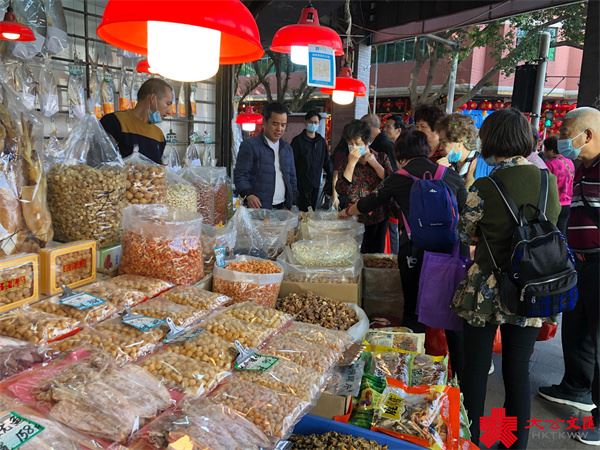 市民遊客在廣州越秀區一德路「年貨一條街」購買年貨。(方俊明攝)