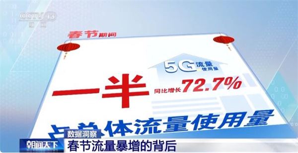 这个春节期间,5G流量使用量同比增长了72.7%,在总体流量使用量中占比达到了一半。这得益于超337万个5G基站的建设,实现了覆盖大江南北的高速网络。这背后是人们更加便捷高效的春节数字化体验:快速稳定的连接让购票更加便捷,高速的网络保障了精准实时的导航服务,社交平台上,人们可以毫无延迟地分享照片和视频,分享节日的欢乐时光。5G技术的广泛应用,让春节期间每个瞬间的连接都更加紧密和生动。