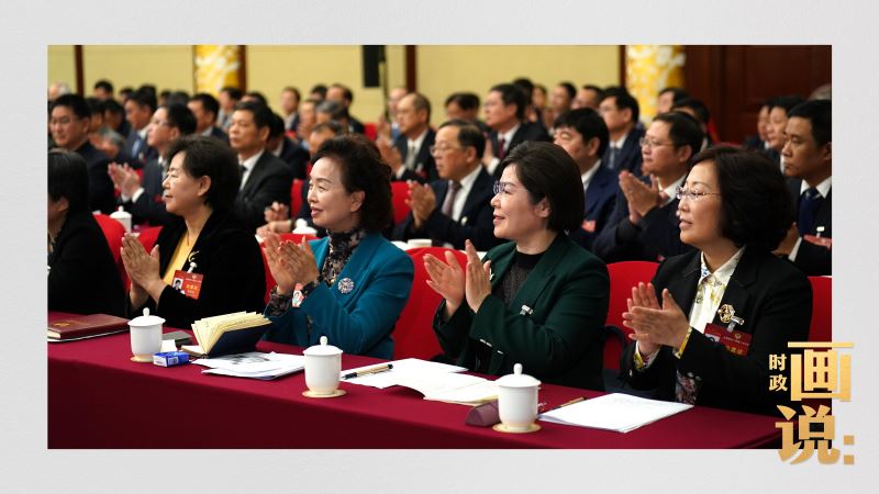 在“三八”国际劳动妇女节即将到来之际,习近平代表中共中央,向参加全国两会的女代表、女委员、女工作人员,向全国各族各界妇女,向香港特别行政区、澳门特别行政区和台湾地区的女同胞、海外女侨胞,致以节日祝贺和美好祝福。现场女委员报以会心的笑容和热烈掌声。