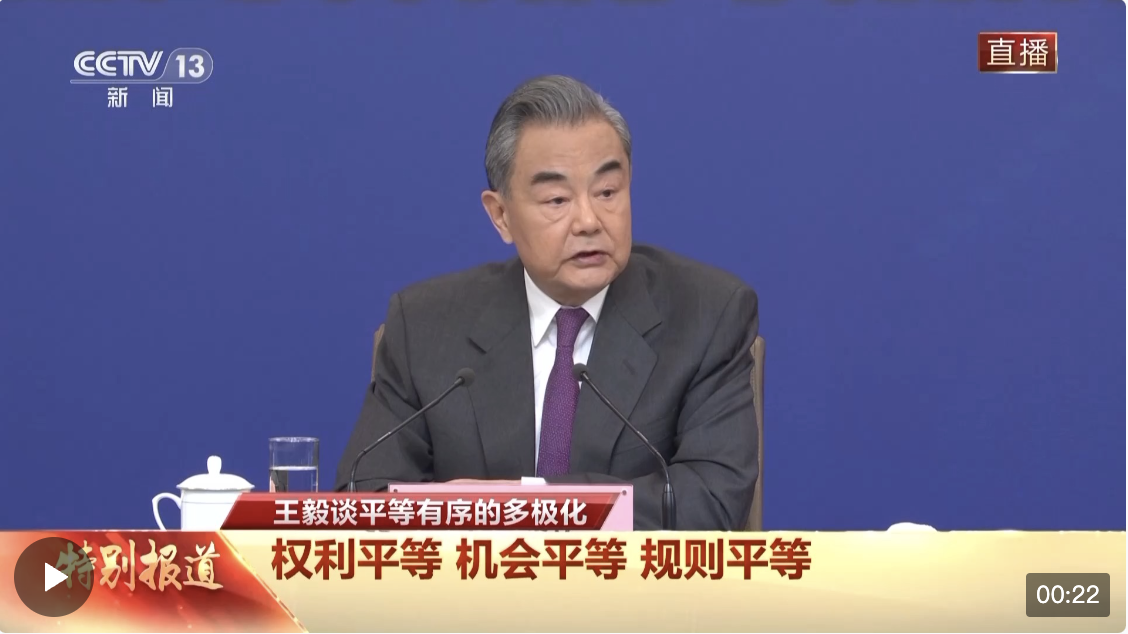 王毅:不能允许有的国家必须在餐桌上有的国家只能在菜单里