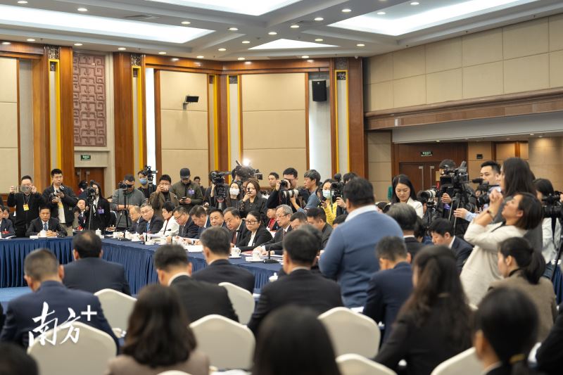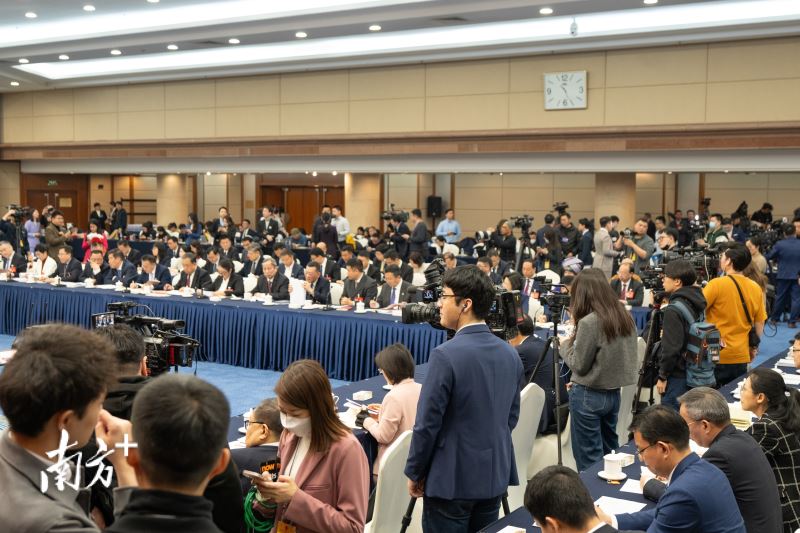 3月7日上午9时,广东代表团举行开放团组会议,审议政府工作报告,审查计划报告和草案、预算报告和草案,102家媒体225名中外记者到场报道。
