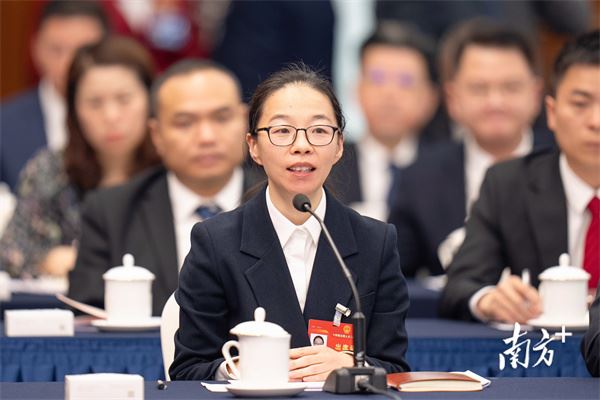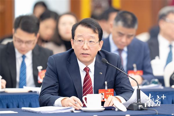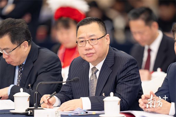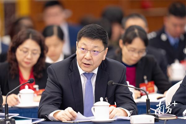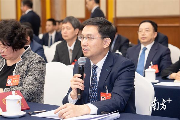3月7日上午,十四届全国人大二次会议广东省代表团举行开放团组会议,审议政府工作报告,审查计划报告和草案、预算报告和草案。会上,代表们结合自身实际,分别聚焦粤港澳大湾区建设、制造业当家、教育强省建设、海洋强省建设、文化传承发展、绿美广东生态建设等话题谈认识、说体会、提建议,现场座无虚席、气氛热烈。