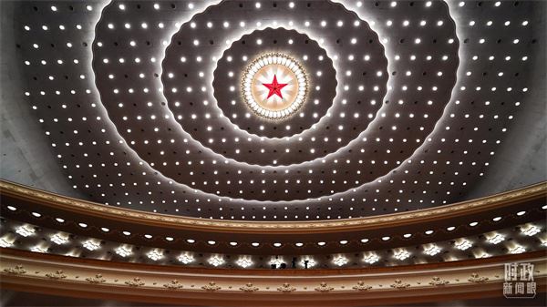 △人民大会堂旗帜飘扬。(总台央视记者刘琦拍摄)