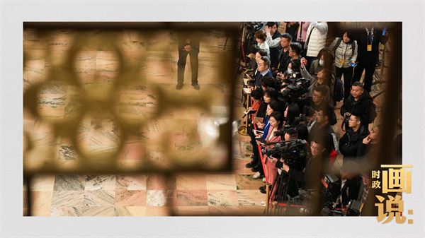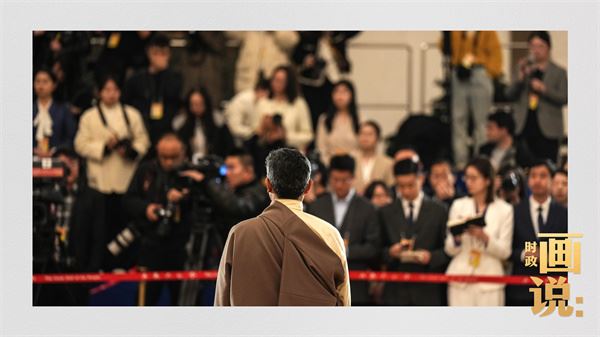 △一位少数民族代表回答现场记者提问。“通道”也如同一扇窗,在这里,思想和信息交流碰撞。