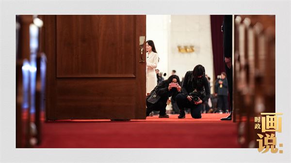 △早早等候代表委员的中外媒体。今年两会“代表通道”、“委员通道”设在人民大会堂东大厅。