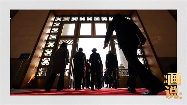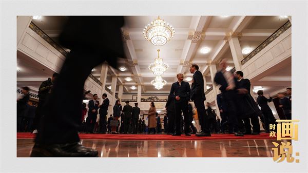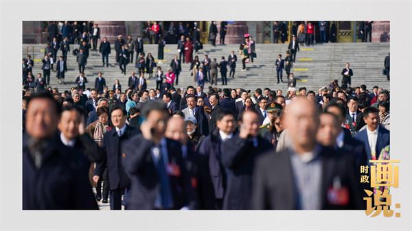△代表、委员们步入会场,静谧的东大厅一时间人流涌动。