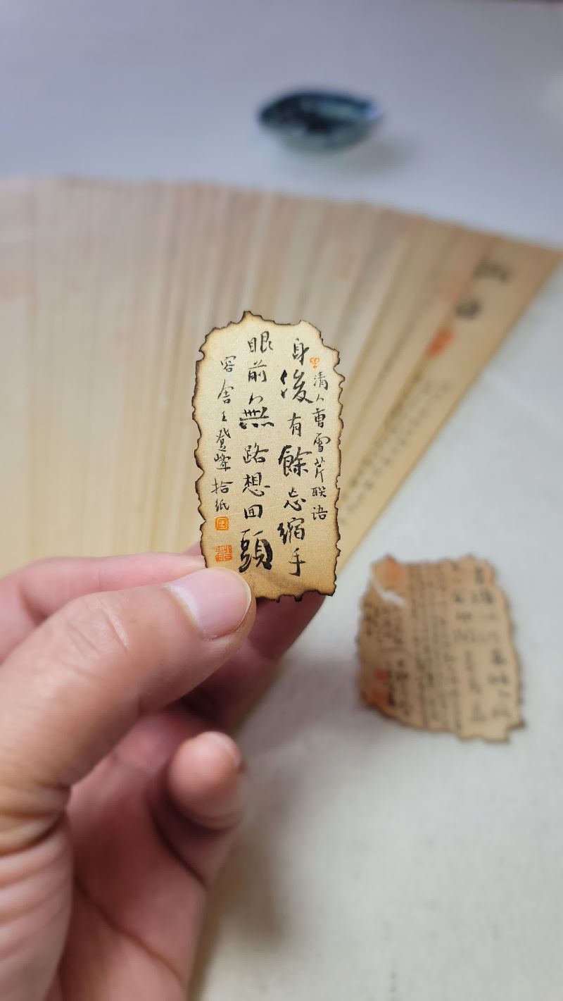 (香港文匯網記者 李望賢 深圳報道)約兩指粗的殘破紙片,燒邊成各種形狀,因應不同的感悟,寫上不同的內容,有的還配着小畫,這些古老的紙片,在青年書法家王登峰的手中,成就了另一番雅趣。寥落或密匝,章法各異的蠅頭小楷,蘊藏的是投身書法四十多年來王登峰內心之大觀,在他看來,每一次落筆,寫就的是一條精神和力量的道路。今年5月18日至5月22日,王登峰首次個展將於在杭州恒廬美術館舉行,展示近6年來作品之大成、約30萬字的作品,多為小楷、微楷,其中包括8萬餘字的《世說新語》。
