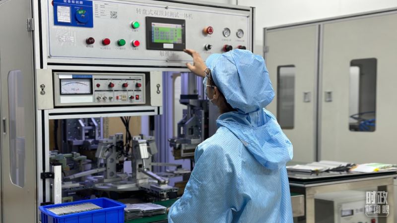 △企业电池技术中心内,员工正在进行电池封装。(总台央视记者卢心雨拍摄)