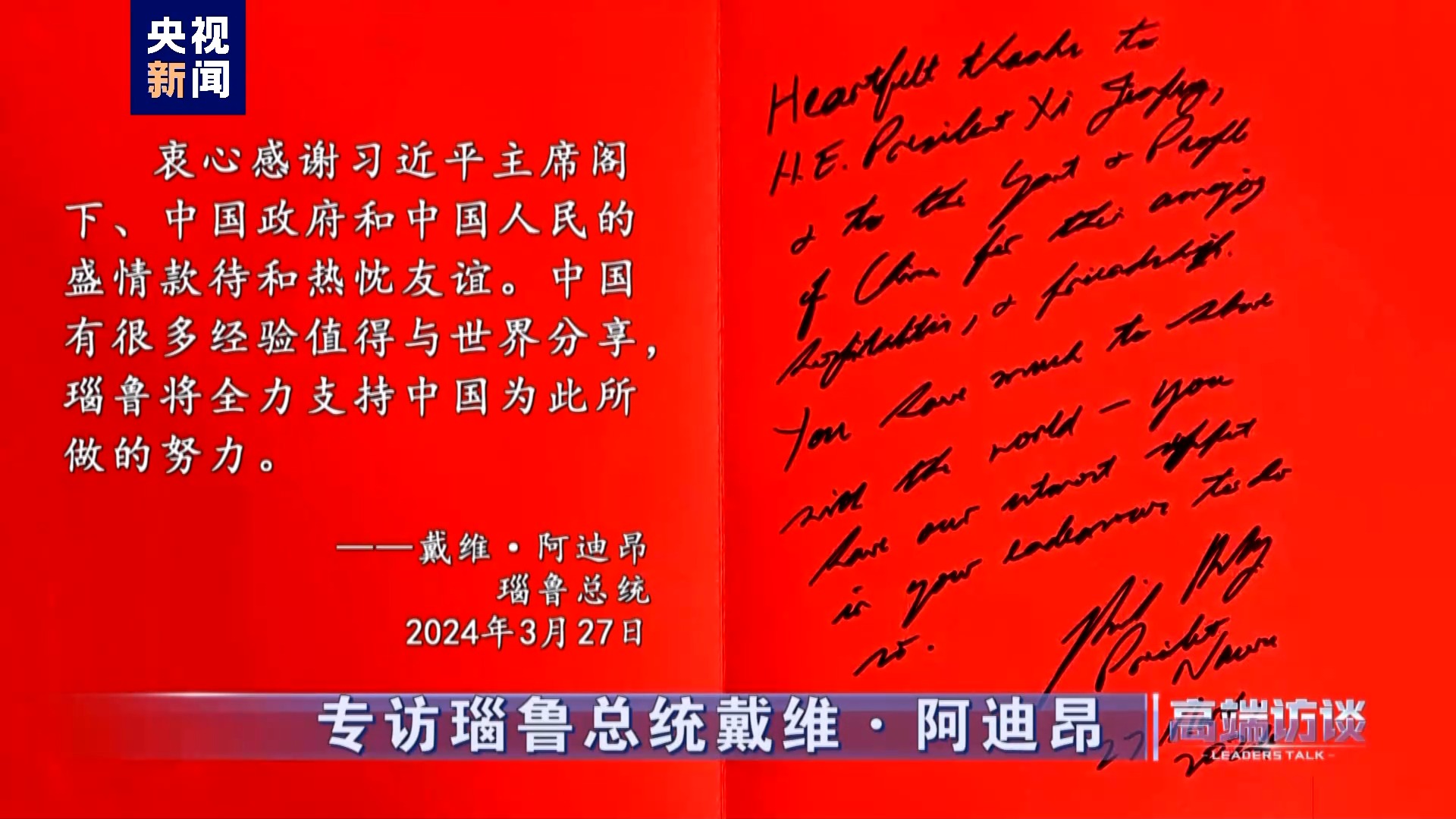 △瑙鲁总统阿迪昂在接受总台专访后题词