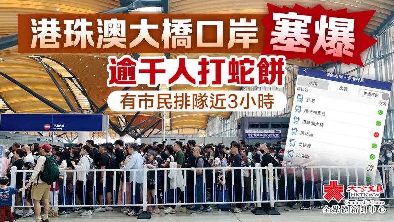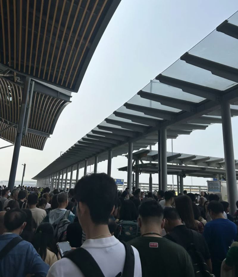 復活節假期首日(3月29日),港珠澳大橋過關的旅客人頭湧湧,至少逾千人同時等候過關,人龍更排出大樓外。
