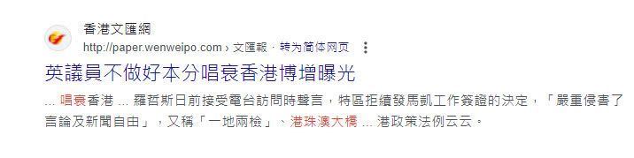 英國議員也將港珠澳大橋作為唱衰香港的例據。