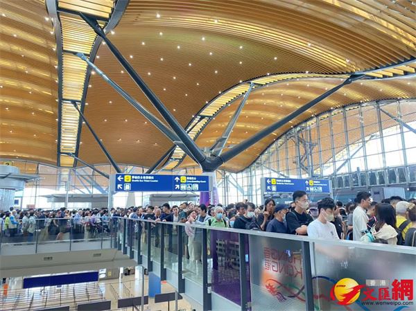港珠澳大橋香港口岸北上人潮逼爆。(香港文匯報記者攝)