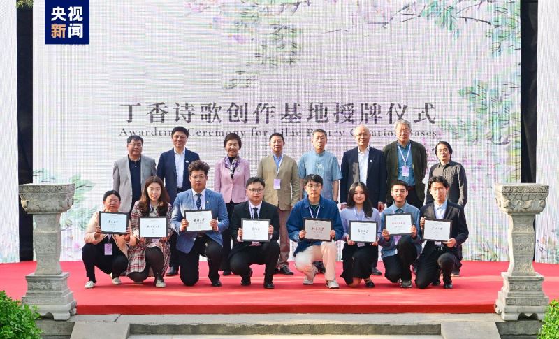 活动现场,来自北京大学、中国人民大学、北京师范大学、南开大学、吉林大学、复旦大学、南京大学、武汉大学八所高校的文学社团正式成为“丁香诗歌创作基地”。西城区人大常委会主任张立新、评论家陈仲义、诗人欧阳江河、西城区政协主席程昌宏、西城区委副书记袁海鹏、诗人臧棣、翻译家高兴、诗人西渡等嘉宾为高校代表现场授牌。
