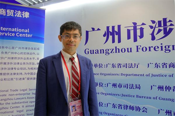 本屆廣交會首次有港澳律師到場執業。圖為首位到場執業的香港律師胡慶業。(大公文匯網記者 盧靜怡 攝)