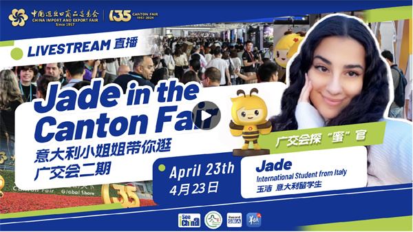 第135届广交会二期来了!4月23日下午,羊城晚报邀请到来自意大利的留学生玉洁(Jade)担任“广交探蜜官”,与记者一起带你“云游”广交会,让你足不出户看遍“中国第一展”。敬请期待!