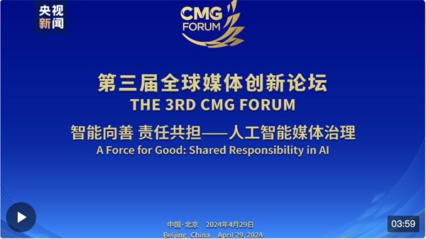 4月29日,由中央广播电视总台主办的第三届全球媒体创新论坛在北京举行。本届论坛以“智能向善责任共担——人工智能媒体治理”为主题,共有200余位来自国际组织、中外主流媒体机构、中外智库、跨国企业等各领域代表,以线上线下结合的方式参会。