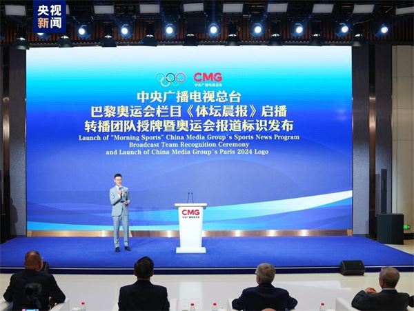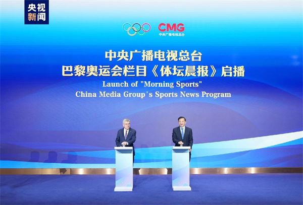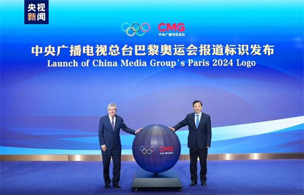 △巴赫与慎海雄共同发布中央广播电视总台巴黎奥运会报道标识