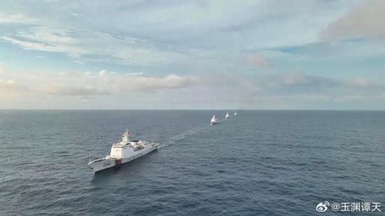 5月24日,海警2304舰艇编队位台岛以东海域开展综合执法演练,重点开展查证识别、警告驱离等科目训练,检验联合巡航、应急处置能力。