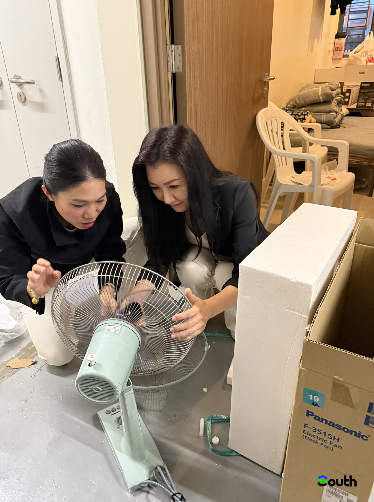 探訪過程中,金玲特意為他們帶來了風扇、微波爐等實用小家電,用這些貼心物件幫大家解決生活不便,讓安置點的日常過得更順暢些。